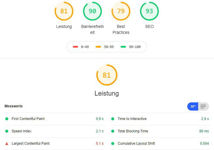 Hinweis: Die installierten Erweiterungen im Chrome-Browser beeinflussen das Ergebnis. Auch die eigene Netzwerkanbindung kann erhebliche Einflüsse auf das Testergebnis haben.